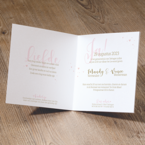 BedrukkingWij bedrukken de kaarten snel en goedkoop in onze eigen drukkerij. Onze ontwerpers maken een gratis design en wij drukken de kaarten pas na uw akkoord. De prijs is inclusief enveloppen.