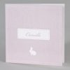Lief geboortekaartje in roze jutepatroon met gepreegd konijn op de voorzijde. Fleur je kaartje op met een gekleurd envelopje naar keuze zonder meerprijs. Formaat: 12 x 12 cm Artikelnummer: 589053