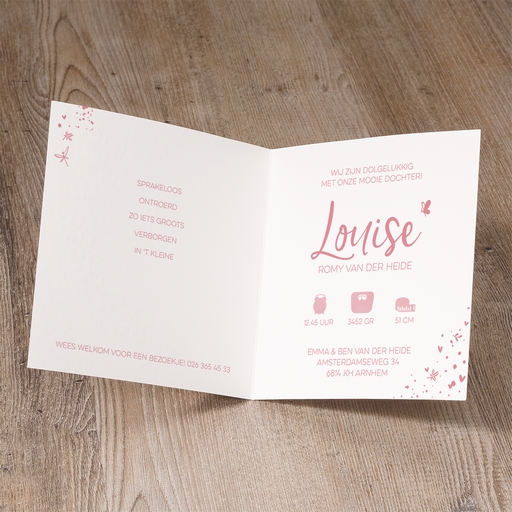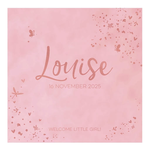 Geboortekaartje – Luxe roségoudfolie met vlindertjes