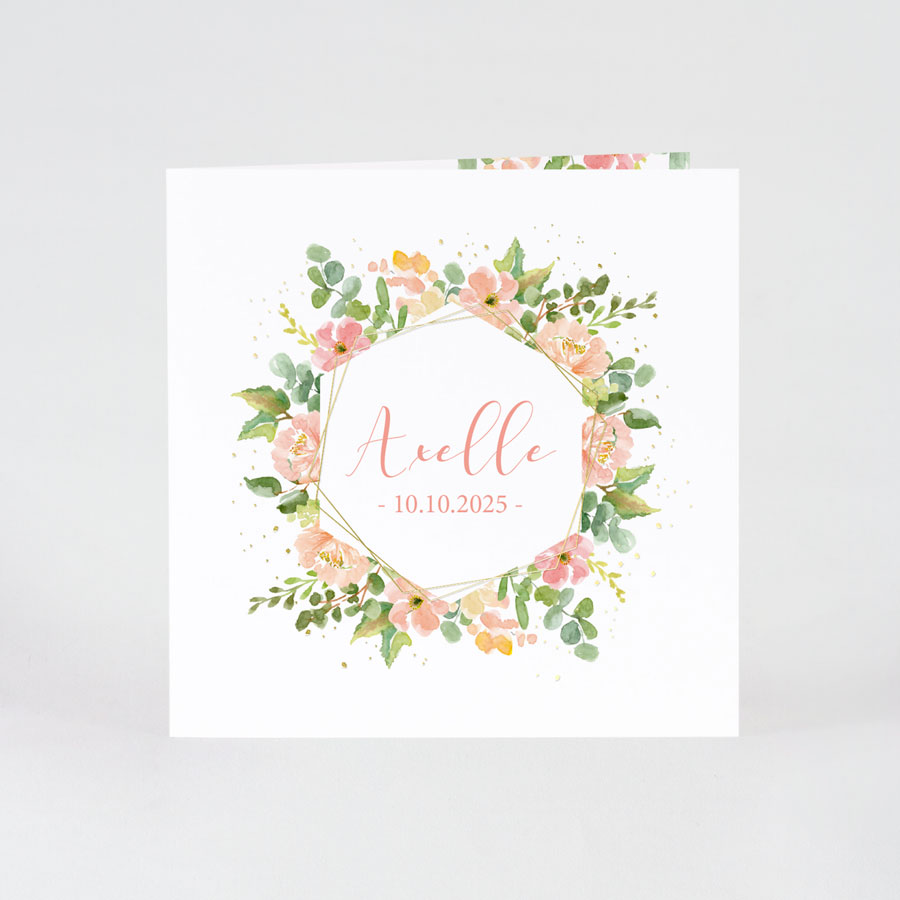 Geboortekaartje met kleurrijke aquarel bloemenkrans en goudfolie