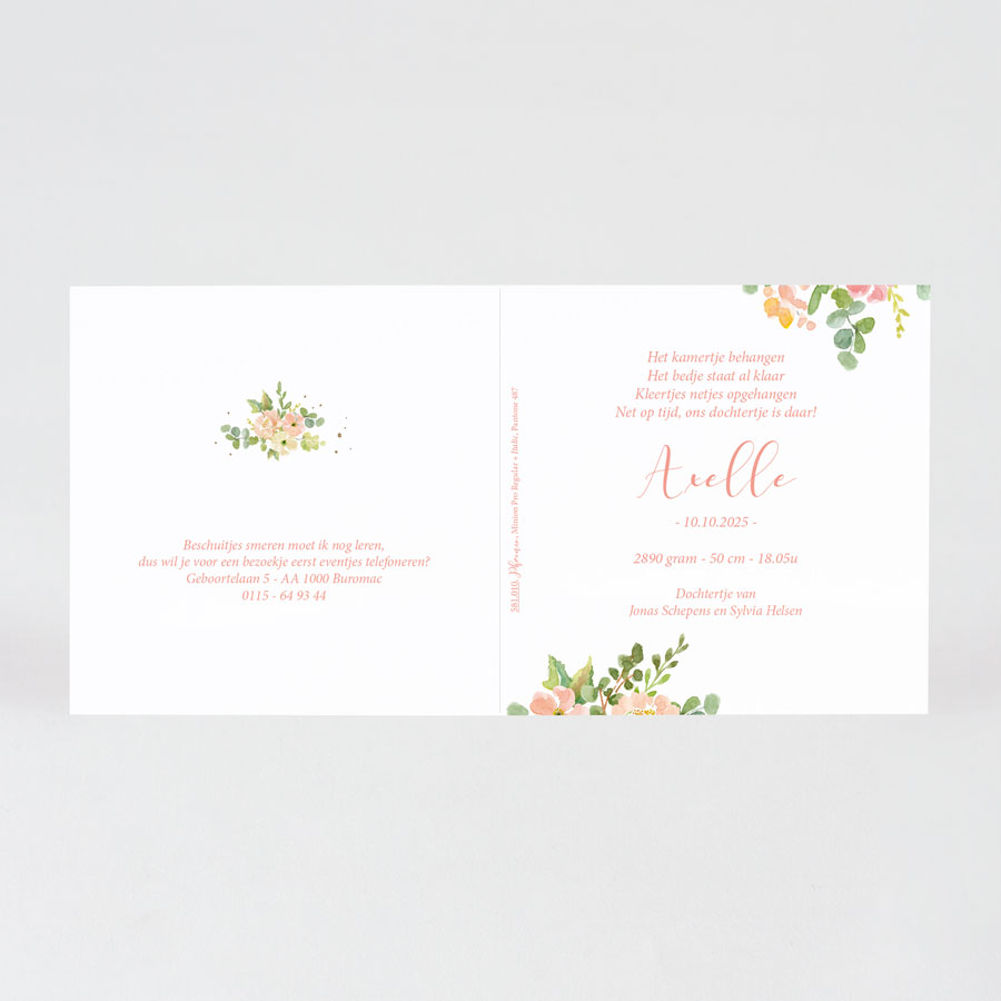 Een prachtige manier om de geboorte van jullie kleine wondertje aan te kondigen. Dat is dit sublieme geboortekaartje met kleurrijke bloemenkrans en goudfolie absoluut! De goudfolie zorgt voor een luxe uitstraling aan dit geboortekaartje.Wij bedrukken de kaarten snel en goedkoop in onze eigen drukkerij. Onze ontwerpers maken gratis een gepersonaliseerde digitale proefdruk en wij drukken de kaarten pas na uw akkoord. De prijs is inclusief enveloppen. Formaat: 12 x 12 cm Artikelnummer: 581010