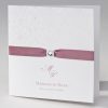 Prachtige huwelijkskaart afgewerkt met een breed roze lint. Het diamantje zorgt voor net dat tikkeltje extra. Formaat: 154 x 154 mm Artikelnummer: 106015