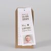 Leuk geboortekaartje met foto in een speelse vorm, met opdruk in roze vichy. De kaartjes worden samengehouden met een bijpassend touw. Fleur je kaartje op met een gekleurd envelopje naar keuze zonder meerprijs. Formaat: 12 x 12 cm Artikelnummer: 589068