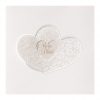 Trouwkaart met sierlijk uitgesneden harten op parelmoerpapier
