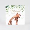 Een kindje geboren! Verras vrienden en familie met deze vertederende geboortekaart mama giraf met kleintje. Voortaan kunt u ook de naam van uw kindje in folie op de voorzijde van de kaart laten drukken (mits meerprijs). U heeft de keuze uit goud, koper, zilver of rosé.Wij bedrukken de kaarten snel en goedkoop in onze eigen drukkerij. Onze ontwerpers maken een gratis gepersonaliseerde digitale proefdruk en wij drukken de kaarten pas na uw akkoord. De prijs is inclusief enveloppen. Formaat: 12 x 12 cm Artikelnummer: 581096